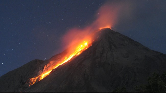 KAGOSHIMA – Gunung api Otake di Pulau Suwanose, prefektur Kagoshima, di barat daya Jepang meletus sekitar tengah malam waktu setempat pada Minggu (14/1/2024).