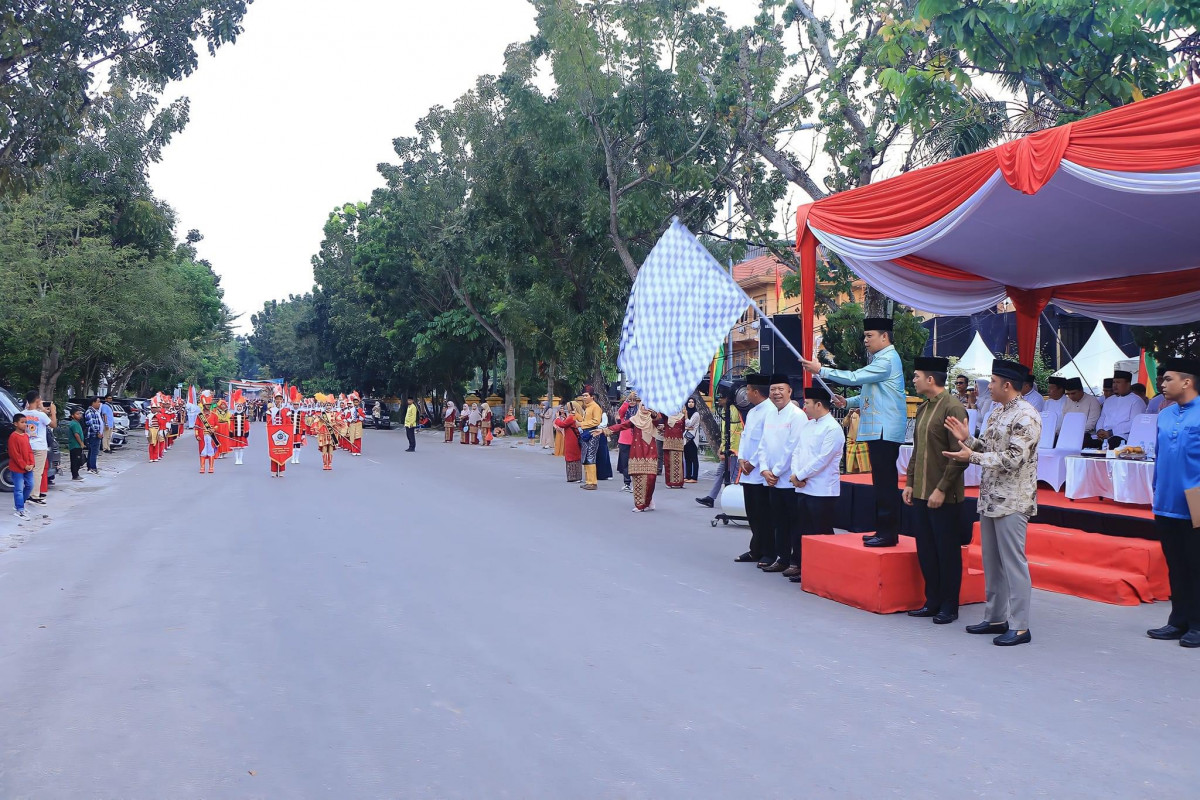 PEKANBARU – Penjabat (Pj) Wali Kota Pekanbaru Muflihun, melepas langsung rombongan pawai taaruf dalam Rangkaian MTQ Tingkat Kota Pekanbaru ke-56, Sabtu (24/2/2024). Ia melepas para peserta dari podium utama di Jalan Cut Nyak Dien.