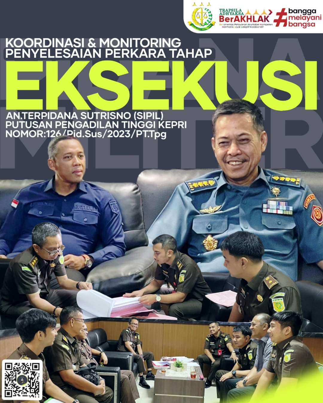 PEKANBARU – Aspidmil Kejati Riau Kolonel Laut (H) Faisol, S.H melakukan koordinasi serta monitoring penyelesaian perkara tahap eksekusi terhadap perkara perlindungan pekerja migran dengan terpidana Sutrisno (Sipil).