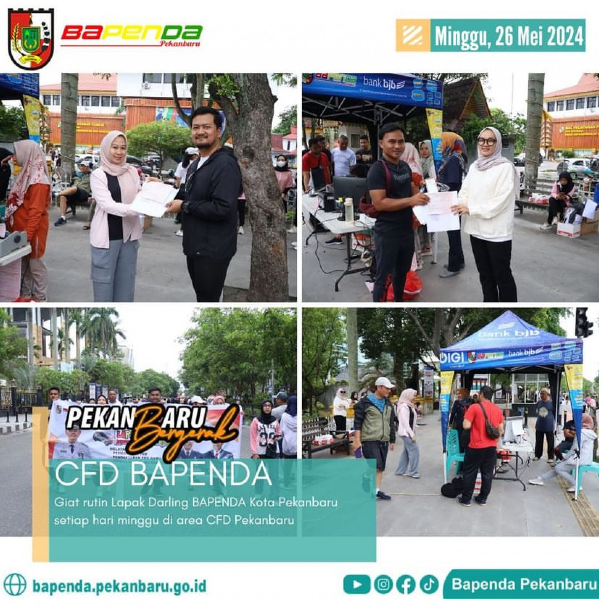 PEKANBARU – Badan Pendapatan Daerah (Bapenda) Kota Pekanbaru kembali membuka Layanan Pajak Daerah Keliling (Lapak Darling) di area Car Free Day (CFD) atau Hari Bebas Kendaraan Bermotor (HBKB) pada hari Minggu pagi.