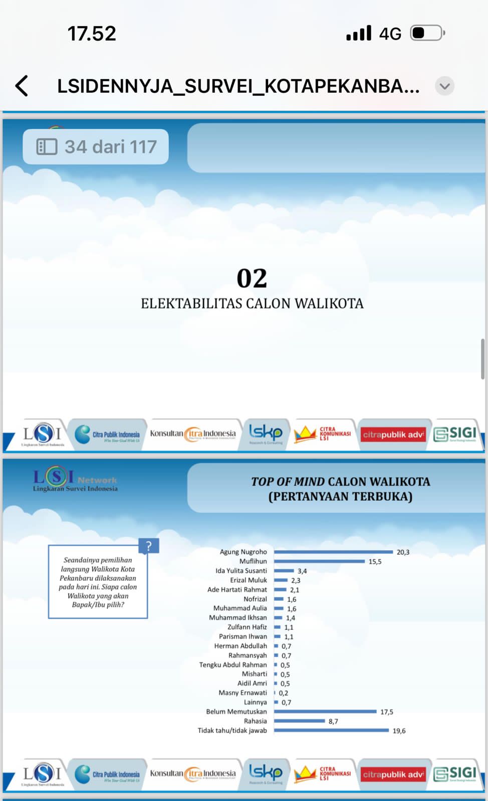 Sedangkan posisi kedua dipegang mantan Pj Walikota Pekanbaru Muflihun dengan raihan 15,5 persen.