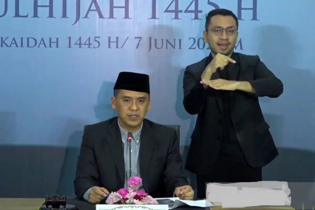 “Berdasarkan hisab posisi hilal wilayah Indonesia yang sudah masuk kriteria MABIMS tersebut, serta adanya laporan hilal terlihat, disepakati bahwa 1 Zulhijah tahun 1445 Hijriah jatuh pada hari Sabtu tanggal 8 Juni 2024 Masehi, dan Insya Allah Hari Raya Idul Adha jatuh pada Senin tanggal 17 Juni 2024,” kata Wakil Menteri Agama (Wamenag) RI Saiful Rahmat Dasuki dalam konferensi pers sidang isbat penetapan 1 Zulhijah 1445 Hijriah yang diikuti secara daring di Jakarta, Jumat (7/6/2024).