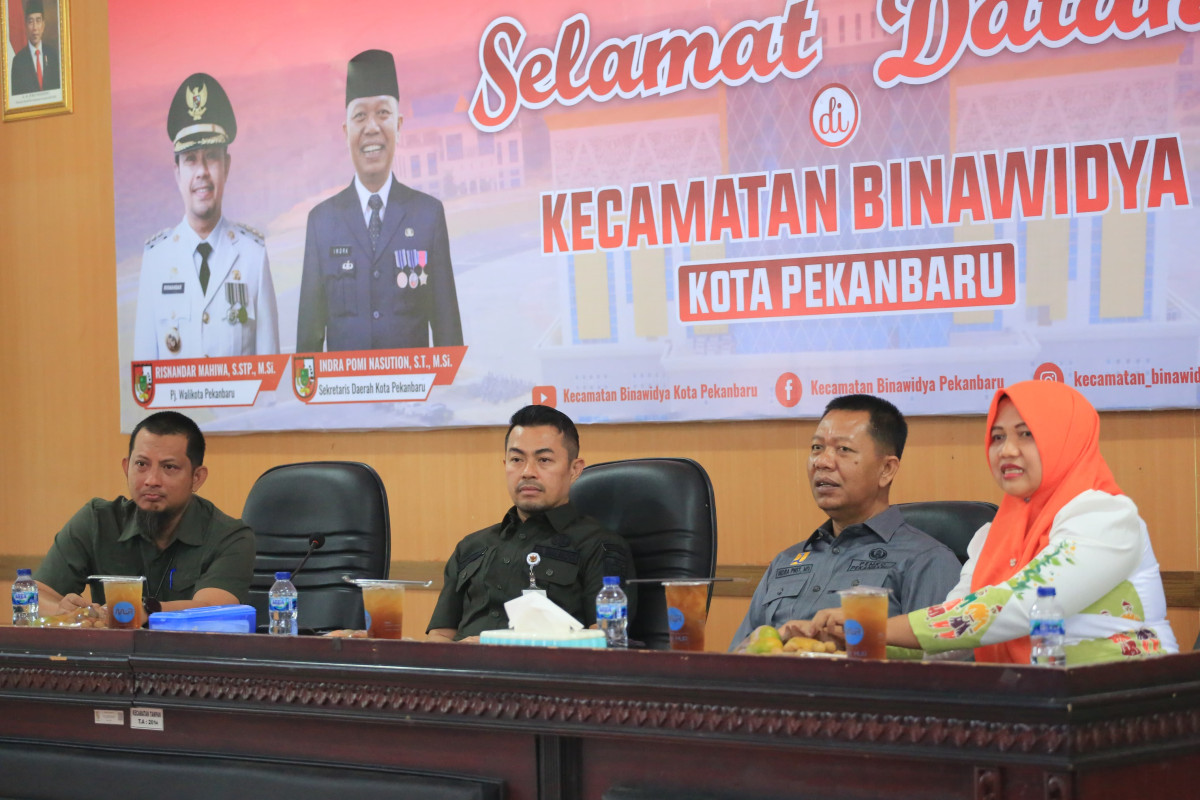 Kedatangan Pj Walikota disambut langsung Camat Binawidya Indah Vidya Astuti bersama jajaran lurah. Pada kunjungan itu, Pj Walikota menggelar diskusi dengan para lurah, bertempat di aula kantor kecamatan setempat.