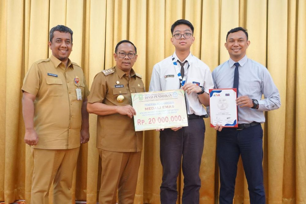 PEKANBARU – Penjabat (Pj) Gubernur Riau (Gubri) Dr. Rahman Hadi, M.Si melakukan pertemuan bersama pelajar SMA Darma Yudha, pekanbaru yang berhasil meraih medali emas pada Olimpiada Fisika Internasional, Jack Howard Wijaya. Pertemuan berlangsung di Kediaman Gubernur Riau, Jalan Diponegoro, Kota Pekanbaru, Selasa (27/8/2024).