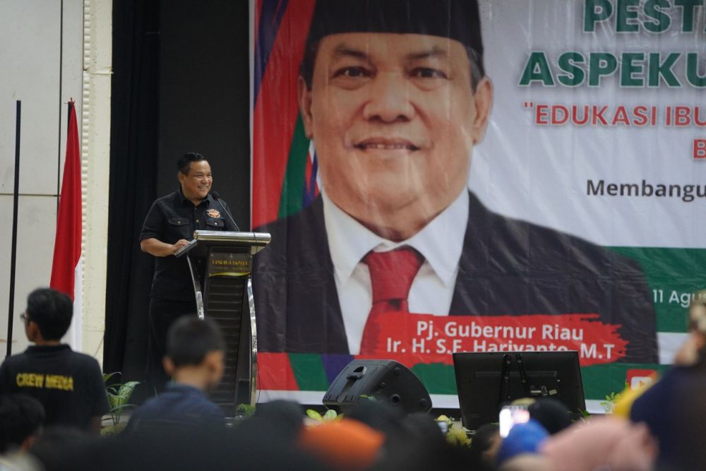 PEKANBARU – Pj Gubernur Riau SF Hariyanto menghadiri pesta kuliner sehat dalam rangka pencegahan stunting sekaligus edukasi ibu dan pembagian makanan sehat untuk anak di Hotel Furaya Pekanbaru, Minggu (11/8/2024).