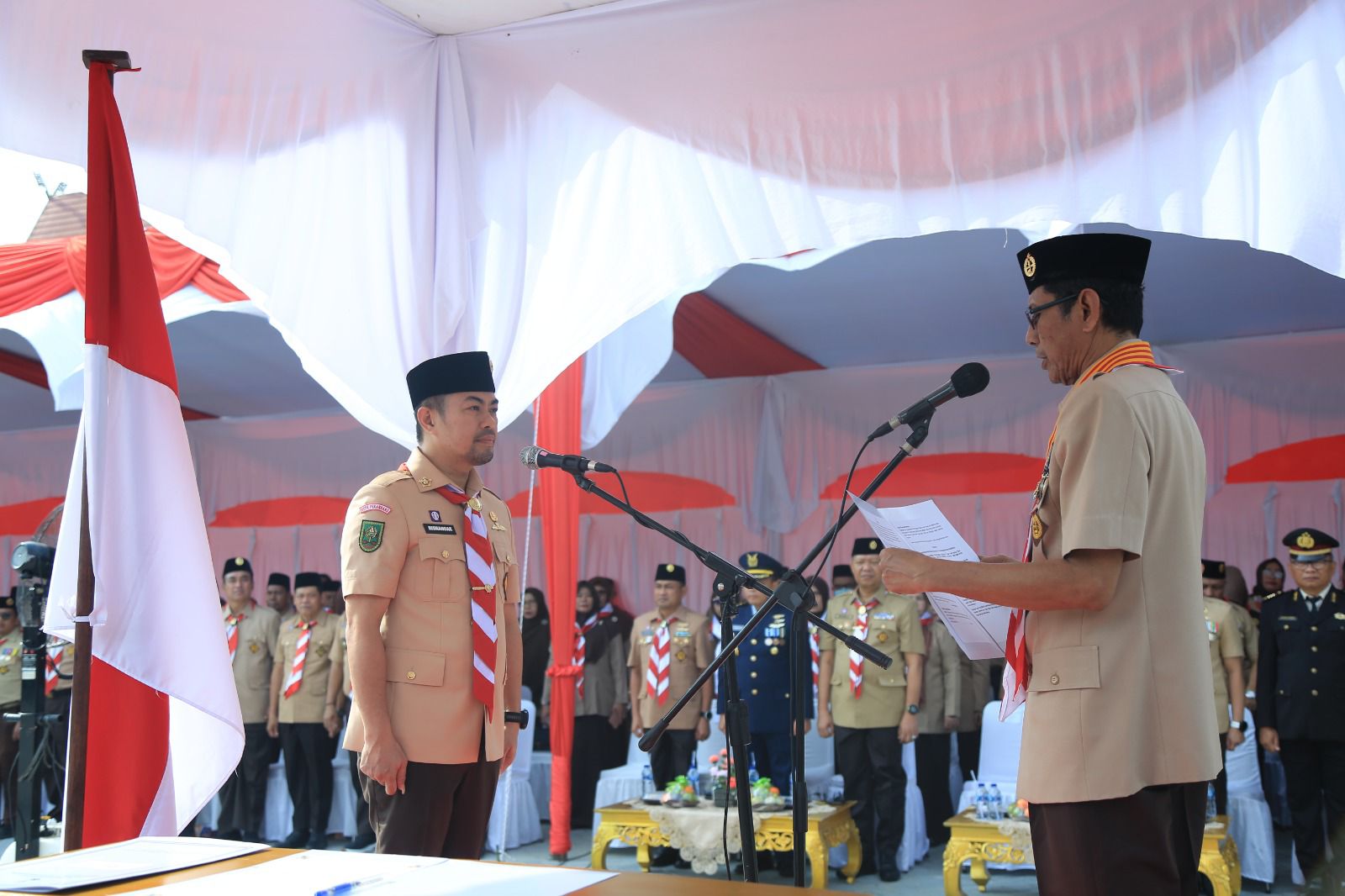 Prosesi pelantikan dipimpin Ketua Kwartir Daerah Gerakan Pramuka Riau Kasiarudin. Pelantikan ini merupakan salah satu agenda HUT ke-63 Pramuka.