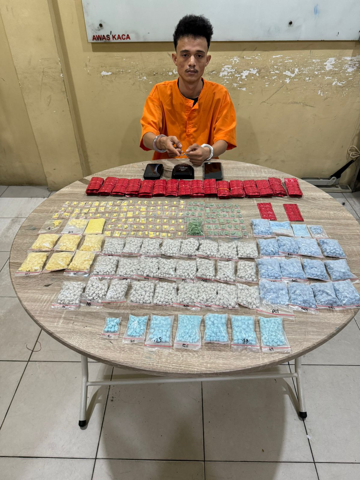 “Sehingga total pil ekstasi yang diamankan berjumlah 5.165 butir, bersama Psikotropika jenis Happy Five dengan jumlah 162 TlK atau 1.620 butir serta timbangan digital,” pungkasnya.