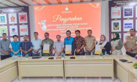 Rohil – Komisi Pemilihan Umum (KPU) Kabupaten Rokan Hilir (Rohil) secara resmi menyerahkan Surat Keputusan (SK) penetapan calon bupati dan wakil Bupati pada Pilkada Rohil tahun 2024, Ahad (22/9/2024) malam.
