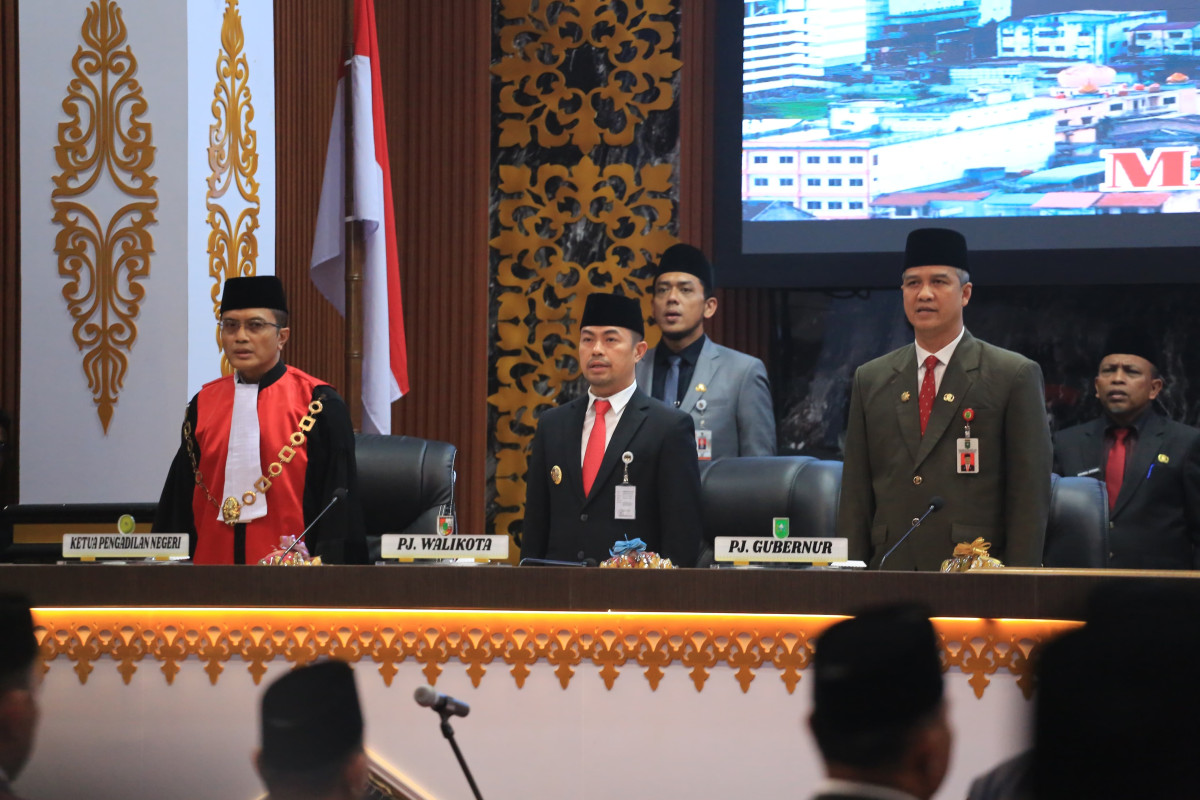 PEKANBARU – Penjabat (Pj) Walikota Pekanbaru Risnandar Mahiwa S.STP, M.Si menghadiri pelantikan dan pegambilan sumpah jabatan 50 Anggota DPRD Pekanbaru periode 2024-2029, Jumat (6/9/2024) siang.