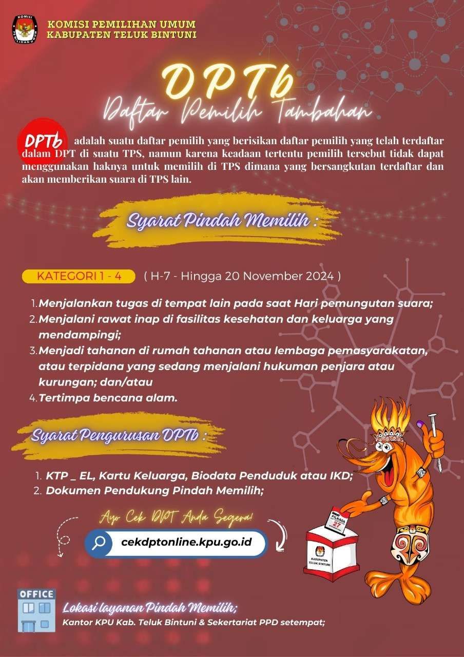 Adapun DPTb ini merupakan pemilih yang sudah terdaftar di Daftar Pemilih Tetap (DPT), namun karena kondisi tertentu melakukan perpindahan untuk memilih.