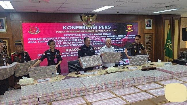 JAKARTA – Kejaksaan Agung (Kejagung) kembali menyita uang tunai sebesar Rp301 miliar di kasus korupsi dan Tindak Pidana Pencucian Uang (TPPU) oleh PT Duta Palma Group.