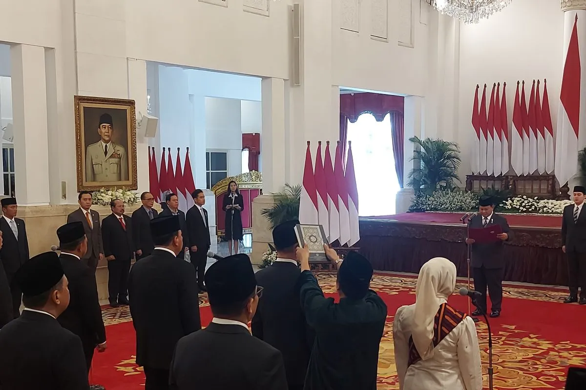 JAKARTA – Presiden RI Prabowo Subianto melantik dan mengambil sumpah pengangkatan Iffa Rosita sebagai anggota Komisi Pemilihan Umum (KPU) RI untuk sisa masa jabatan tahun 2022-2027 di Istana Negara, Jakarta, Selasa (5/11/2024).