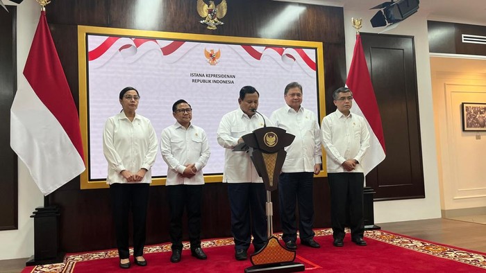 Kenaikan upah minimum ini diumumkan Prabowo di Istana Negara, Jakarta, Jumat (29/11/2024). Prabowo didampingi Menko Perekonomian Airlangga Hartarto, Menko Pemberdayaan Masyarakat Muhaimin Iskandar, Menaker Yassierli, hingga Menkeu Sri Mulyani.