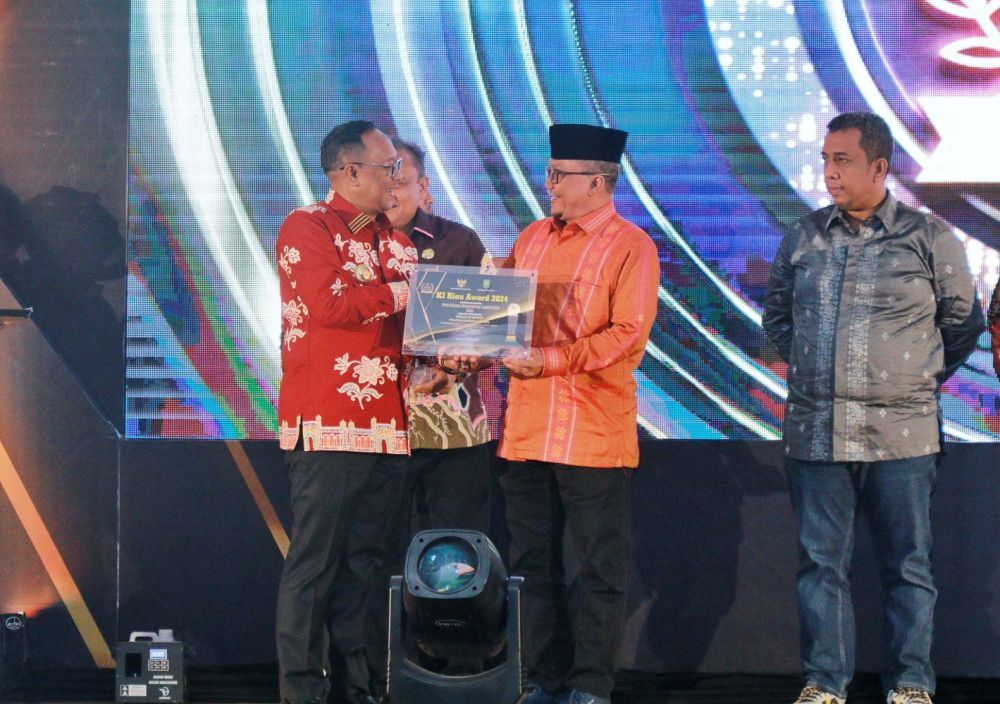Penghargaan diserahkan Pj Gubernur Riau Rahman Hadi kepada Sekretaris Daerah Kabupaten Siak Arfan Usman, KI Riau menilai Pemkab Siak dalam hal ini Diskominfo Siak telah menyelenggarakan layanan informasi publik transparan dan akuntabel.