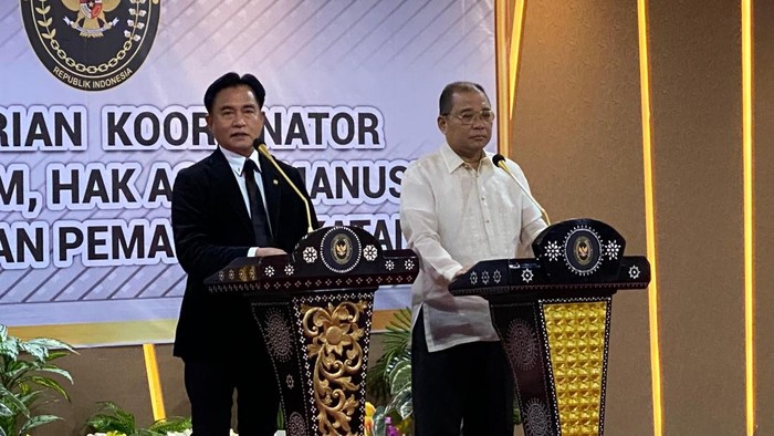 JAKARTA – Menko Kumham Imipas Yusril Ihza Mahendra menandatangani kesepakatan dengan Wamen Departemen Kehakiman Filipina, Raul Vasquez, terkait transfer narapidana kasus narkoba, Mary Jane Veloso, ke negaranya Filipina. Yusril menyebut pemerintah Filipina meringankan hukuman Mary Jane menjadi penjara seumur hidup.
