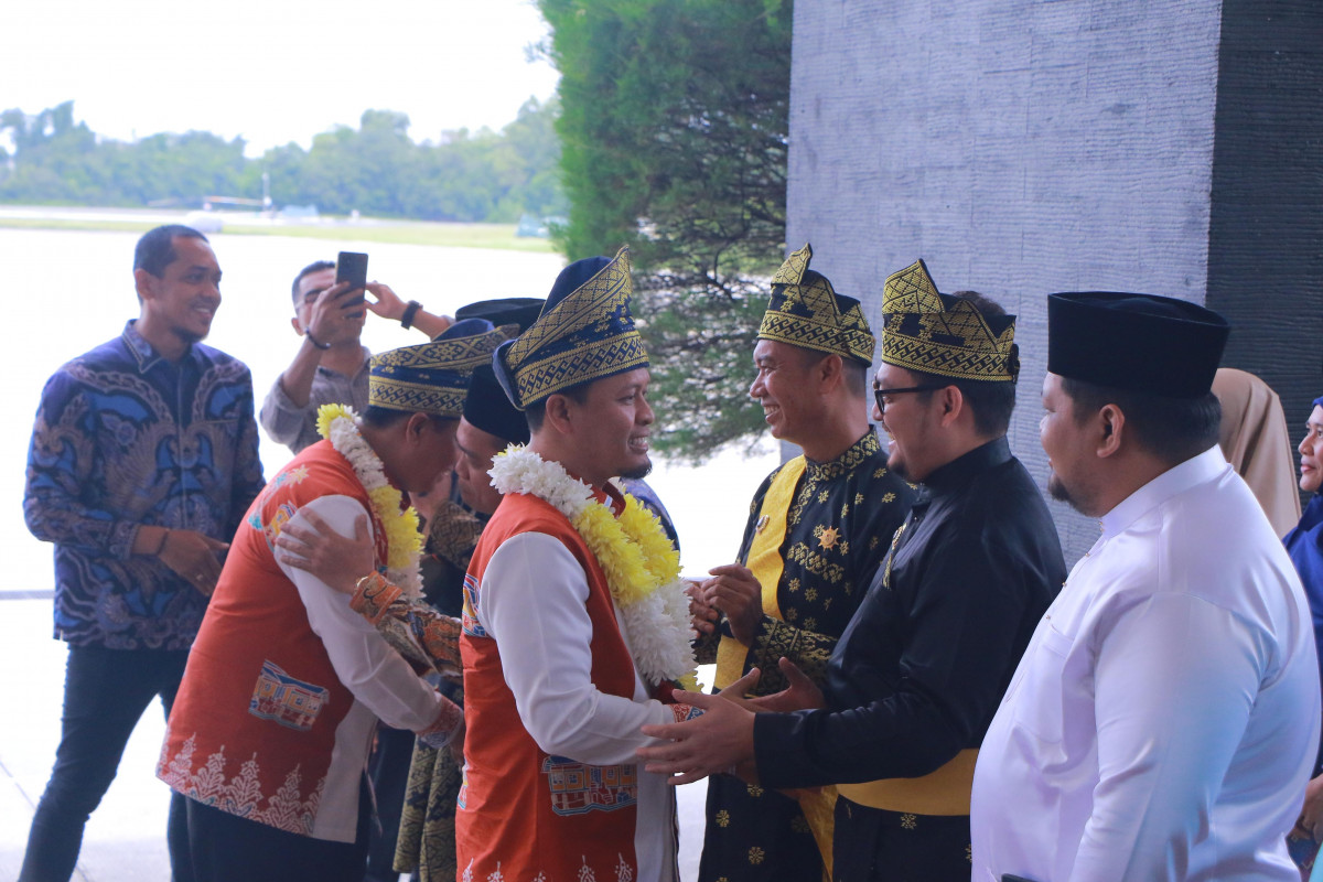 PEKANBARU – Kedatangan Walikota dan Wakil Walikota Pekanbaru, Agung Nugroho-Markarius Anwar disambut Lembaga Adat Melayu Riau (LAMR) di VIP Lancang Kuning Bandara SSK II, Sabtu (1/3/2025).