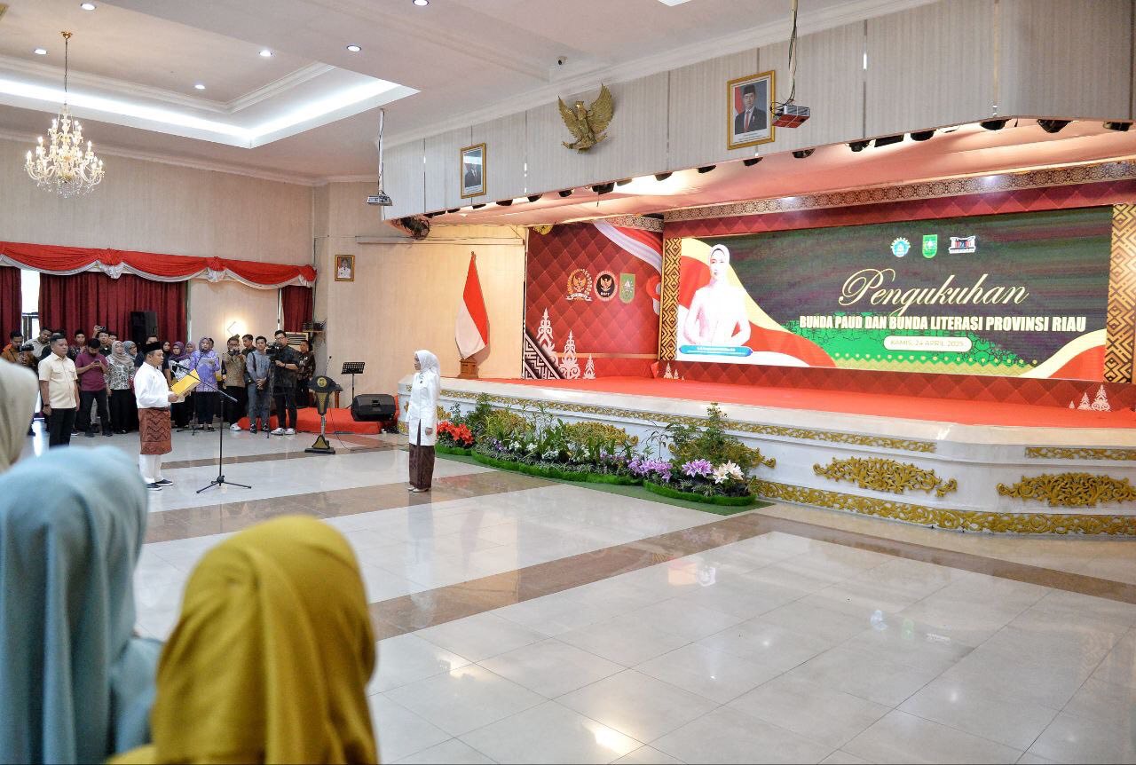 PEKANBARU – Gubernur Riau (Gubri) Abdul Wahid resmi mengukuhkan istrinya, Henny Sasmita Wahid, sebagai Bunda PAUD dan Bunda Literasi Provinsi Riau. Pengukuhan berlangsung di Gedung Daerah Balai Serindit pada Kamis (24/4/2025).