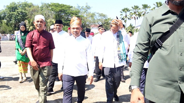Gubernur Riau bersama Ketua TP-PKK Provinsi Riau dan ulama kondang Ustadz Abdul Somad (UAS) tiba di Tembilahan menggunakan helikopter. Setibanya di halaman Kantor Bupati Inhil, rombongan disambut dengan prosesi pemasangan tanjak oleh Bupati Herman, sebagai simbol penghormatan adat Melayu. Sebelum menuju lokasi utama, rombongan juga sempat bersilaturahmi di rumah dinas Bupati Inhil.
