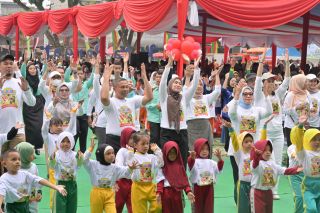 Kegiatan yang berlangsung di Ruang Terbuka Hijau (RTH) Rengat pada Rabu (23/7/2025) ini juga dihadiri oleh Bupati Inhu, Ade Agus Hartanto, serta Menteri Pemberdayaan Perempuan dan Perlindungan Anak (PPPA) RI, Arifatul Fauzi. Mereka semua kompak mengikuti gerakan senam Anak Indonesia Hebat yang diiringi lagu “Tanah Air Beta.”