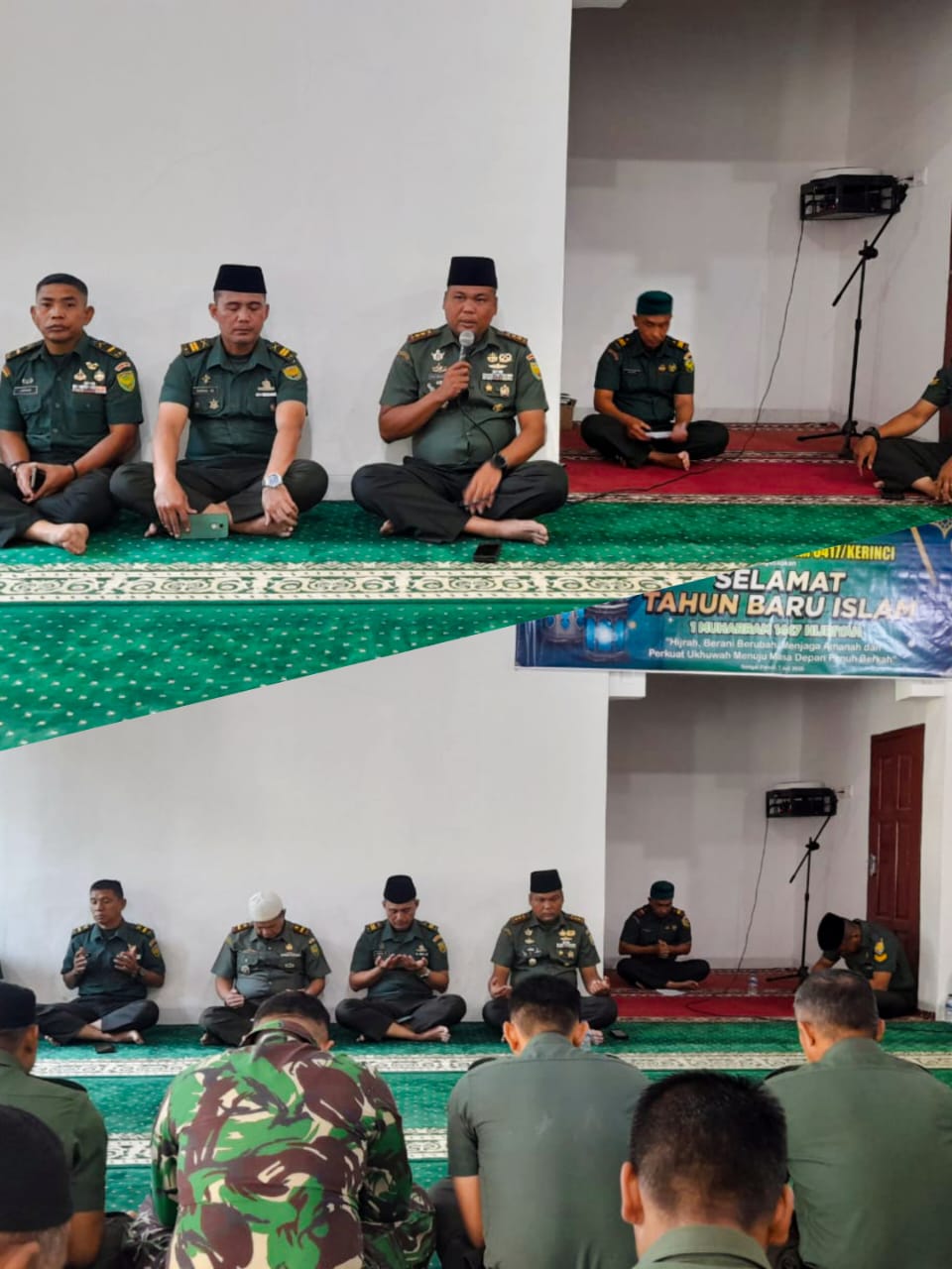 Peringatan tahun baru Islam ini dihadiri Dandim 0417/Kerinci Letkol Inf Eko Budiarto, S.I.P., M.I.P. Seluruh prajurit dan PNS Kodim 0417/Kerinci turut serta memeriahkan acara keagamaan ini.