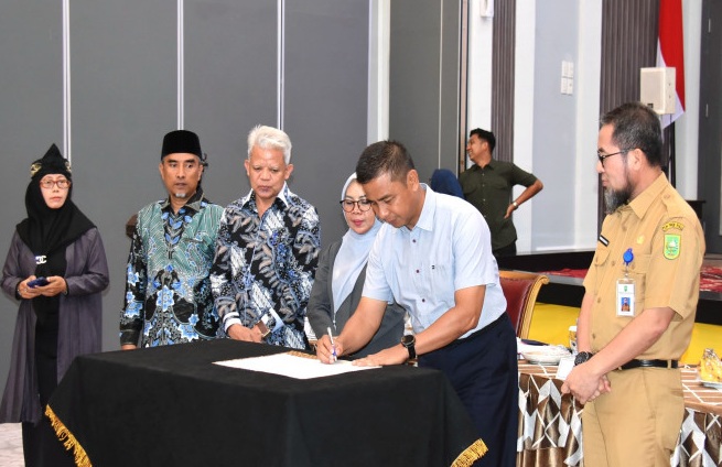Acara diakhiri dengan penandatanganan Berita Acara Musrenbang RPJMD Kabupaten Kampar Tahun 2025-2029.