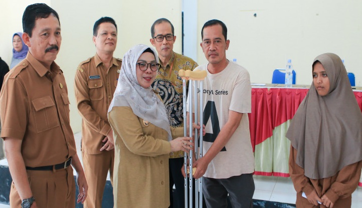 BANGKINANG – Wakil Bupati Kampar, Dr. Hj. Misharti, S.Ag., M.Si., secara simbolis menyerahkan bantuan atensi bagi penyandang disabilitas di Kabupaten Kampar. Bantuan ini berasal dari Sentra Handayani UPT Kemensos RI dan diserahkan di Aula Kantor Camat Bangkinang pada Selasa (15/7/2025).