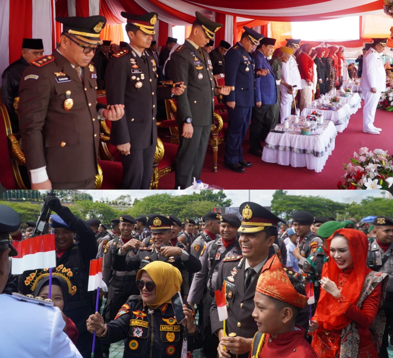 Kegiatan dihadiri Wakil Bupati H. Syafaruddin Poti, S.H., M.M., unsur Forkopimda, para pejabat daerah, serta ratusan warga. Dari jajaran Polres Rokan Hulu terlihat para pejabat utama yang mendampingi Kapolres. Pengibaran Sang Merah Putih dilaksanakan oleh Pasukan Pengibar Bendera (Paskibraka) Kabupaten Rokan Hulu 2025 secara khidmat. Suasana upacara berlangsung aman, tertib, dan terkendali.