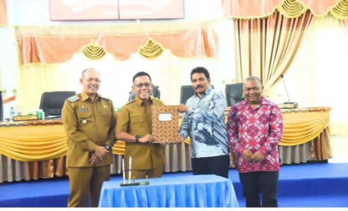 PANDAN – Bupati Tapanuli Tengah Masinton Pasaribu, SH, MH bersama dengan Ketua DPRD Kabupaten Tapanuli Tengah Ahmad Rivai Sibarani, tanda tangani Nota Kesepakatan Rencana Pembangunan Jangka Menengah Daerah (RPJMD) Kabupaten Tapanuli Tengah Tahun 2025 – 2029, dalam Rapat Paripurna DPRD Kabupaten Tapanuli Tengah, Selasa (19/08/2025).