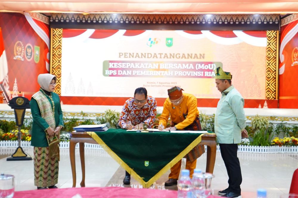 PEKANBARU – Pemerintah Provinsi (Pemprov) Riau menjalin kerja sama strategis dengan Badan Pusat Statistik (BPS) Republik Indonesia melalui penandatanganan Nota Kesepakatan (MoU) untuk mengimplementasikan program Satu Data Riau. Penandatanganan dilakukan langsung oleh Gubernur Riau, Abdul Wahid, dan Kepala BPS RI, Amalia Adininggar Widyasanti, di Gedung Daerah Balai Serindit pada Kamis (7/8/2025).