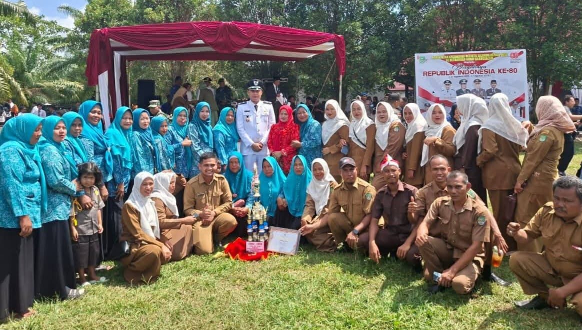 Piagam penghargaan tersebut diserahkan oleh Ketua TP-PKK Dr. Yeni Dwi Putri kepada Efni Saswita melalui Sekretaris Desa, Hamidun, S.Ip, di halaman Kantor Bupati Rokan Hulu, Minggu (17/08/ 2025).