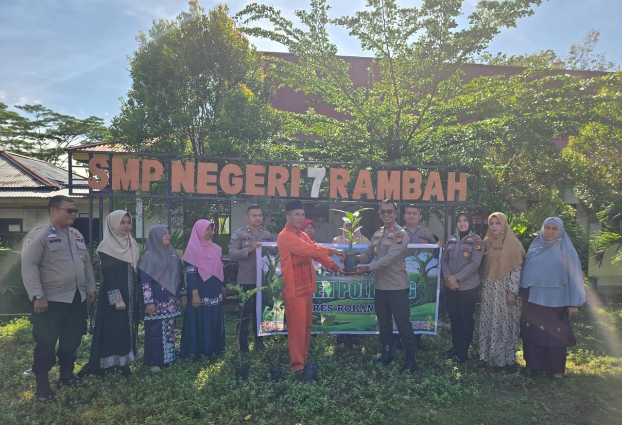 ROHUL —Polres Rokan Hulu melalui Gabungan Si Polres Rokan Hulu menggelar aksi tanam pohon di SMPN 7 Rambah, Kecamatan Rambah, Jumat (15/8/2025), untuk menyukseskan program Kapolda Riau “Mewujudkan Green Policing”.