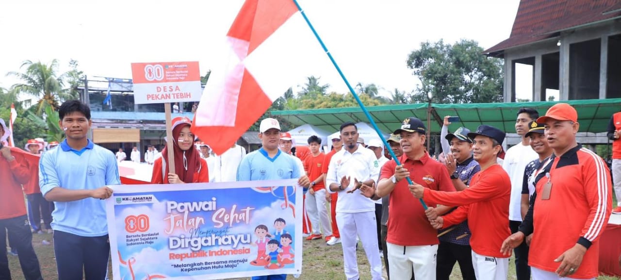 ROKAN HULU— Semarak HUT ke-80 Republik Indonesia di Kecamatan Kepenuhan Hulu ditandai pawai jalan sehat dan penanaman 1.000 pohon di Lapangan LKA Kepenuhan Hulu, Kamis (14/08/2025). Ribuan pelajar tumpah ruah mengikuti kegiatan yang mengusung semangat sehat, hijau, dan nasionalis.