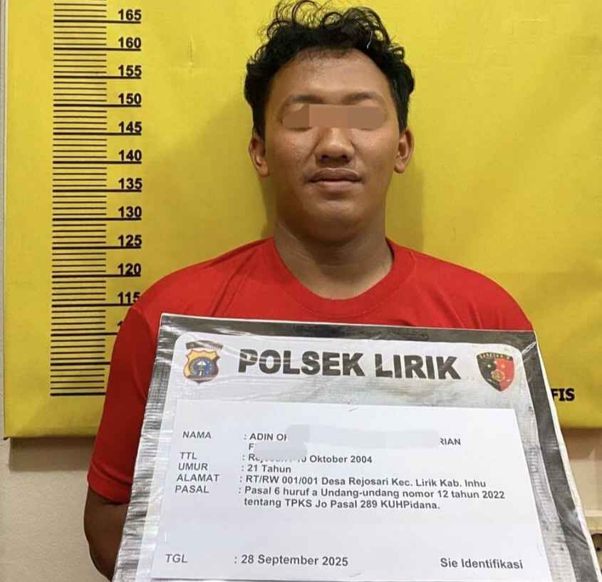 “Kasus ini berawal dari laporan korban bernama NGP (21), perawat asal Lirik. Korban melaporkan telah menjadi korban pelecehan seksual pada Minggu (21/9/2025) sekira pukul 21.23 WIB, saat melintas di jalan Sei Keras, Desa Gudang Batu, Kecamatan Lirik, Kabupaten Indragiri Hulu (Inhu), Provinsi Riau,” kata Kapolres Inhu AKBP Fahrian Saleh Siregar melalui Kasi Humas Aiptu Misran kepada wartawan, Senin (29/9/2025) siang.