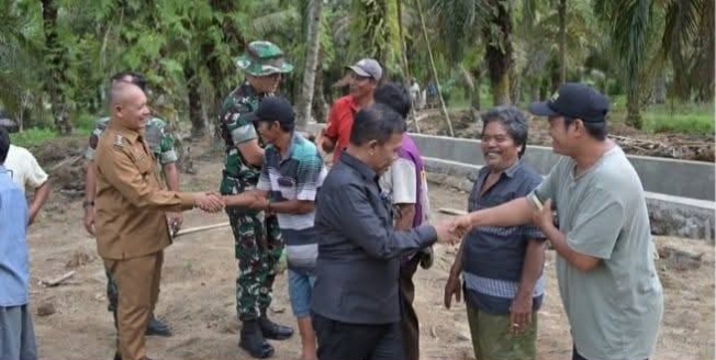 Turut hadir Pasi Teritorial Kodim 0211 TT, Plt. Kadis Pertanian Kabupaten Tapanuli Tengah, Plt. Kadis PUPR Kabupaten Tapanuli Tengah, Danramil Pinangsori, Camat Sibabangun, dan Kades Mombang Boru.