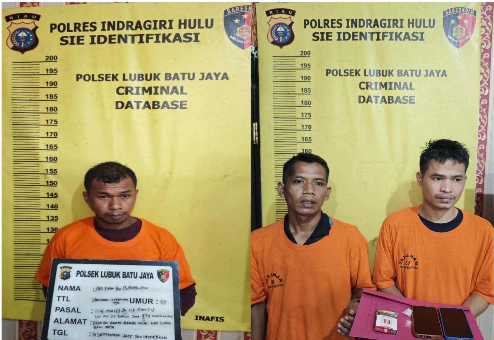 RENGAT – Unit Reskrim Polsek Lubuk Batu Jaya (LBJ) kembali berhasil memberantas peredaran narkotika di wilayah hukumnya. Tiga pelaku ditangkap diduga terlibat penyalahgunaan narkotika jenis sabu-sabu di Desa Rimpian Kecamatan LBJ Kabupaten Indragiri Hulu (Inhu) Provinsi Riau, Rabu (10/9/2025).