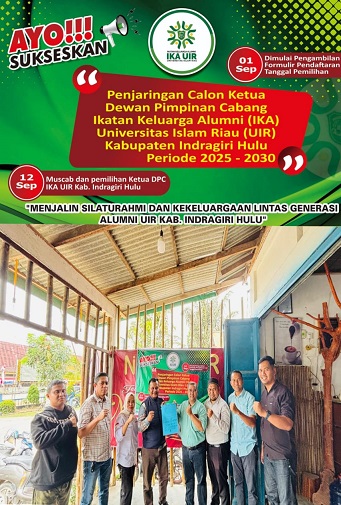 Han Aulia Nasution dkk dalam keterangannya mengatakan, kami penerima mandat DPP IKA UIR bahwa hari ini merilis pertama dan membuka bursa pencalonan Ketua DPC IKA UIR Inhu periode 2025-2030. Bursa pencalonan kami hingga 12 September 2025.