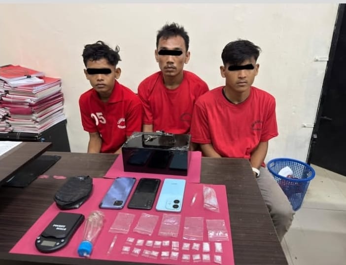 Menindaklanjuti laporan itu, tim Satresnarkoba Polres Rokan Hulu yang dipimpin Aipda Ronaldi langsung bergerak melakukan penyelidikan. Hasilnya, polisi berhasil meringkus tiga pemuda yang masing-masing berinisial SK (19), BK (18), dan PTF (21).