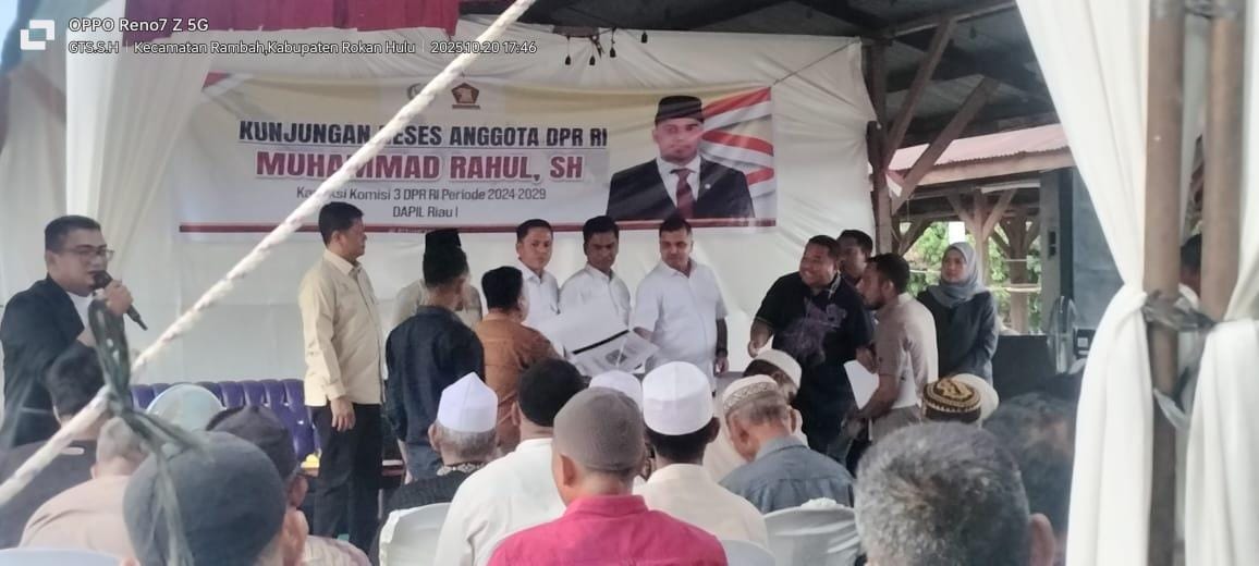 ROHUL– Anggota DPR RI Dapil Riau I, Muhammad Rahul, S.H., melaksanakan kunjungan reses di Desa Rambah Tengah Hilir, Kecamatan Rambah, Kabupaten Rokan Hulu, Senin (20/10/2025).