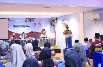 SELATPANJANG – Pemerintah Kabupaten (Pemkab) Kepulauan Meranti terus berupaya meningkatkan kualitas Sumber Daya Manusia (SDM) melalui sektor ekonomi kreatif. Melalui Dinas Kepemudaan, Olahraga dan Pariwisata (Disporapar), Pemkab menggelar Bimbingan Teknis (Bimtek) dan Sosialisasi Kewirausahaan di Ballroom Aka Meranti Hotel, Senin (22/12/2025).