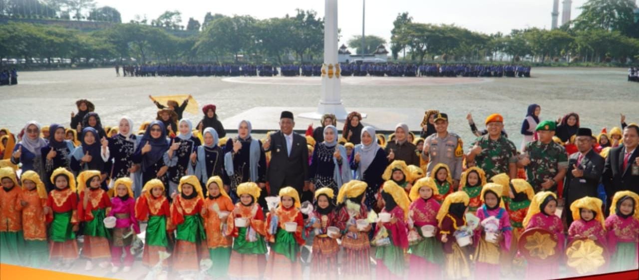 Nuansa peringatan terasa sejak awal upacara dengan penampilan Tari Massal “Sri Kandi Melayu” yang dibawakan oleh anak-anak PAUD. Tarian tersebut melambangkan keberanian, ketangguhan, serta keanggunan perempuan Melayu yang ditanamkan sejak usia dini.