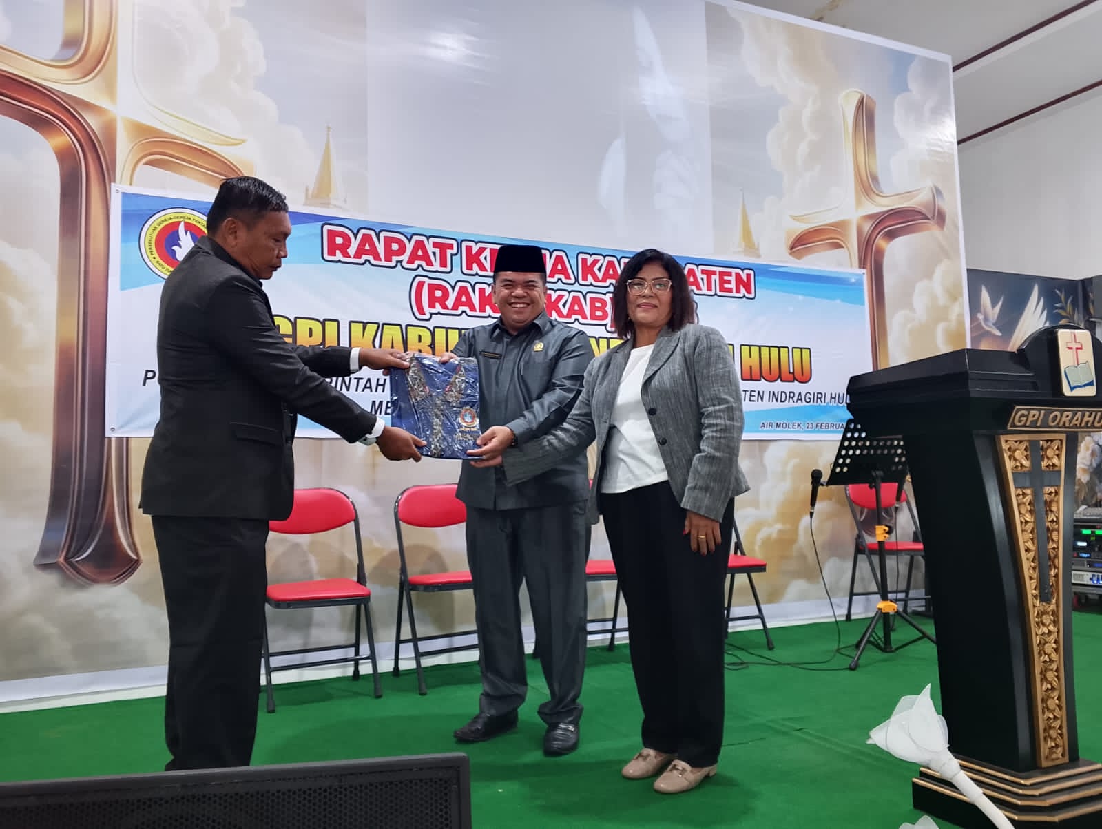 Sementara Ketua PGPI Inhu, Pendeta M. Situmeang, mengucapkan terima kasih atas kehadiran Ketua DPRD, sekaligus yang telah menyerahkan cendramata baju seragam PGPI Inhu.