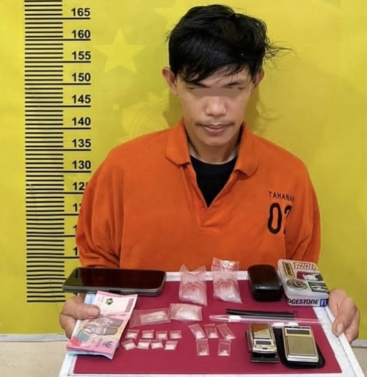 Pengungkapan terjadi sekira pukul 14.10 WIB di rumah tersangka, RT 020 RW 005 Desa Bukit Meranti. Dari tangan pelaku, polisi menyita sabu dengan berat kotor 6,69 gram yang telah terbagi dalam 15 paket plastik klip siap edar.