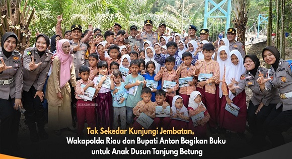 Tak hanya berfokus pada pembangunan fisik, kunjungan tersebut juga diisi dengan aksi sosial yang menyentuh dunia pendidikan. Wakapolda Riau bersama Bupati Rokan Hulu menyerahkan bingkisan berupa buku bacaan kepada anak-anak pelajar di Dusun Tanjung Betung. Aksi ini disambut antusias oleh anak-anak yang tampak gembira menerima sarana belajar tersebut.