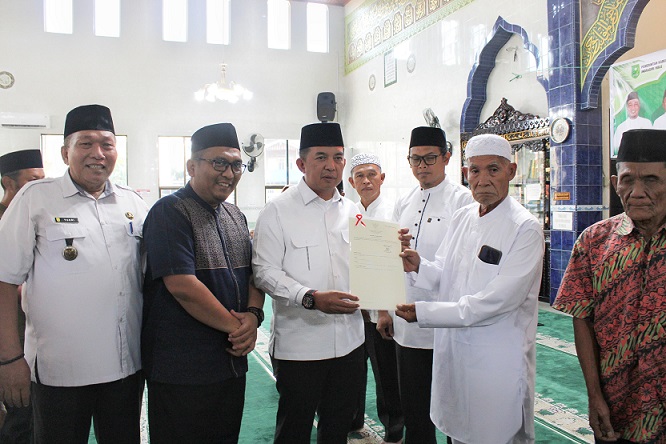 RENGAT – Bersamaan dengan kegiatan kunjungan Safari Ramadhan Pemerintah Daerah Kabupaten Indragiri Hulu tahun 1447 Hijriah/2026 Masehi yang dilaksanakan di Masjid Jami’ At-Taqwa Desa Batu Gajah, Kepala Kantor Pertanahan Kabupaten Indragiri Hulu, Ir. Syafrisar Masri Limart, S.T, M.A.P bersama Pemda Inhu yang diwakili oleh Sekda Inhu, Zulfahmi Adrian A.P M.Si menyerahkan empat sertipikat tanah wakaf di Kecamatan Pasir Penyu pada Rabu, 11 Maret 2026.