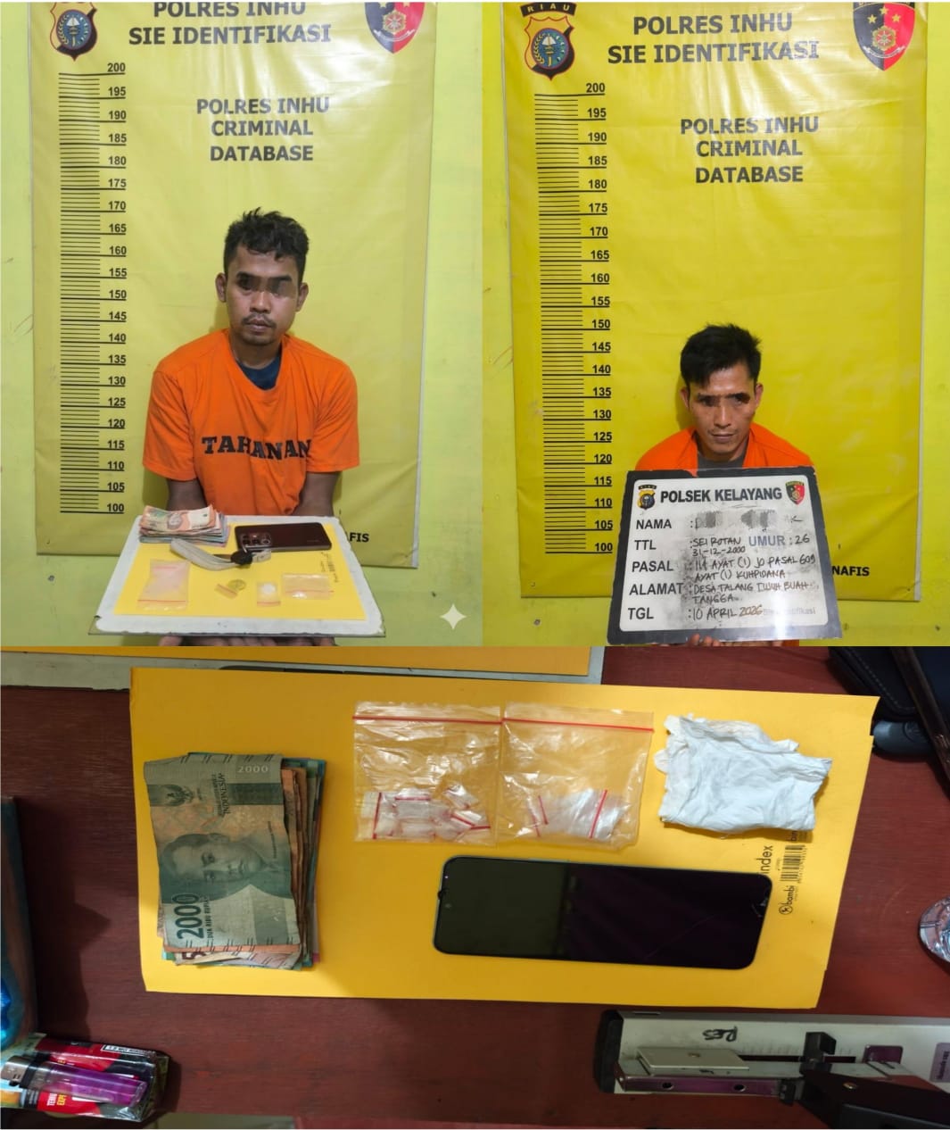 Kini, kedua pelaku telah diamankan di Polsek Kelayang guna menjalani proses hukum lebih lanjut. Keduanya dijerat dengan pasal terkait tindak pidana narkotika sesuai ketentuan yang berlaku.