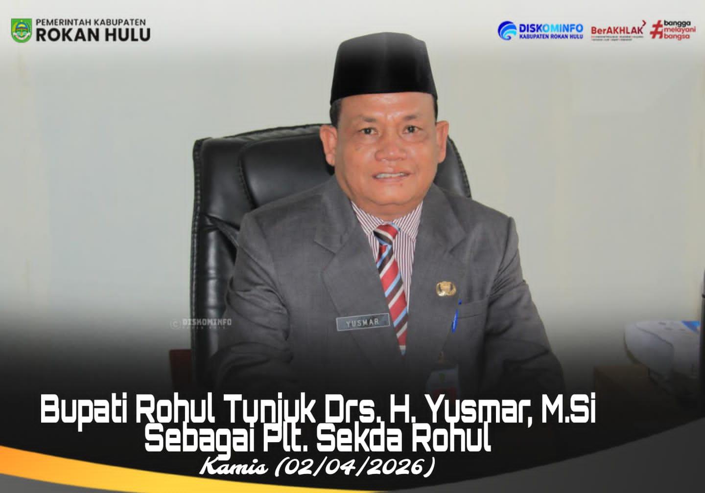 Bupati secara resmi menunjuk dan mempercayakan amanah Pelaksana Tugas (Plt) Sekda kepada Drs. H. Yusmar, M.Si. Penunjukan ini tertuang dalam Surat Keputusan Bupati Rohul Nomor: 100.3.5.2/BKPP-MT/78.19/2026 yang ditandatangani pada Kamis malam (2/4/2026) pukul 22.00 WIB.